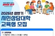 뉴스펀치 조평훈 기자 | 대구광역시 종합복지회관은 오는 3월 31일부터 5월 26일까지 심리상담에 관심 있는 일반 시민과 상담 관련 종사자를 대상으로 ‘2026년 상반기 시민상담대학’을 운영한다. 시민상담대학은 2020년 상담 전공자와 종사자를 대상으로 시작된 ‘상담대학’을 기반으로, 일반 시민까지 참여 대상을 확대해 연 2회(상·하반기) 운영 중인 대표 상담교육 프로그램이다. 교육과정은 총 10회기로 구성되며, 매주 화요일 오후 진행되는 온라인 강의(ZOOM) 8회와 오프라인 특강 2회로 이뤄진다. 상반기 오프라인 특강은 4월 11일과 5월 16일 오전에 진행될 예정이다. 상반기 교육과정에서는 상담가의 역할 및 대상별 상담 기본이론 등 전반적인 상담 기초과정을 다룬다. 오프라인 특강에서는 그림으로 읽는 미술치료 등 현장감 있는 교육이 마련된다. 또한 대학교수와 상담센터 대표 등 분야별 전문가를 강사진으로 초빙해 보다 체계적이고 실효성 있는 상담교육을 제공하고, 시민들의 심리상담 접근성을 높여 심리상담의 대중화와 전문 시민상담가 양성에 기여할 계획이다. 기수별 모집 인원은 100명으로