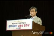 뉴스펀치 김완규 기자 | 서울 중구가 제29회 노인의 날(10월 2일)을 기념해 지난 2일 중구 구민회관 대강당에서 기념식과 함께 어르신 어울림 한마당을 열었다. 이날 행사에는 어르신과 내빈 등 500여 명이 참석해 어르신들에 대한 노고에 존경과 감사를 표했다. 1부에서는 노인 복지와 지역 발전을 위해 헌신하신 65세 이상 모범어르신 3명과 노인복지 기여자 9명, 기여 단체 1곳에 표창이 수여됐다. 2부 행사에서는 초대가수 축하공연과 어르신 장기자랑이 펼쳐졌다. 어르신으로 구성된 11팀이 무대에 올라 노래와 악기 연주 실력을 뽐내며 흥겨운 시간을 만들었다. 김 구청장도 '고맙소'라는 노래를 불러 어르신들의 호응을 얻었다. 행사장 로비에는 영양 건강 체험 부스가 마련되어 어르신들이 드신 식사의 칼로리와 나트륨양 등을 직접 계산해보고 균형잡힌 식사법에 대한 상담도 받을수 있었으며, 추척사진관 부스에서는 교복을 입고 사진을 찍으며 옛 추억을 떠올렸다. 행사에는 한국삭도공업주식회사, 대신자산신탁, 한마음라이온스, 중구자원봉사센터를 비롯한 여러 업체와 기관이 경품, 기념품, 간식 등을 후원해 더욱 풍성하게