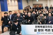 뉴스펀치 정홍균 기자 | 전북특별자치도가 공무 수행 중 적립된 공적 항공마일리지를 활용해 도내 복지시설에 생활필수품을 기부하는 ‘공적 마일리지 나눔’을 꾸준히 이어가고 있다. 도는 12일 설 명절을 앞두고 전북장애인복지관을 방문해 공적 항공마일리지를 활용해 마련한 생활필수품을 전달하고, 복지관 종사자와 이용 장애인들을 격려했다. 이날 나눔식에는 김관영 도지사를 비롯해 복지관 관계자와 이용자들이 함께해 따뜻한 분위기 속에서 전달식이 진행됐다. 이번 기부는 공무 수행 과정에서 적립된 항공마일리지 중 유효기간 만료로 소멸될 예정인 마일리지를 공익 목적으로 활용한 사례다. 2025년 말 소멸 예정 마일리지 보유자와 자발적으로 참여한 공무원 등 40여 명이 동참해 총 486,250마일리지가 사용됐다. 기부 물품은 항공사 마일리지몰을 통해 직접 구매했으며, 화장지, 라면, 치약·칫솔, 샴푸류, 물티슈 등 생활필수품 15종 121세트로 구성됐다. 복지시설 이용자들의 일상에 실질적인 도움이 되는 품목 위주로 마련됐다. 공적 항공마일리지 기부는 '공무원 보수 등의 업무지침'에 따른 공무원여비업무 처리기