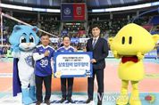 뉴스펀치 김길룡 기자 | 이장우 대전시장은 21일 대전충무체육관에서, 6개월간의 V-리그 대장정에 나서는 연고팀 대전 삼성화재 블루팡스의 승리를 기원하는 시구에 참여했다. 1세트 종료 후에는 삼성화재 블루팡스×꿈돌이 굿즈를 공동 브랜딩을 위한 상호협력 협약을 체결하고, 스포츠마케팅을 확장하기로 했다.