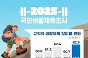 뉴스펀치 박세훈 기자 | 문화체육관광부는 만 10세 이상인 국민 9천 명을 대상으로 시행한 ‘2025년 국민생활체육조사’ 결과를 발표했다. 2025년 생활체육 참여율(주 1회, 30분 이상)은 62.9%로, 전년 대비 2.2%포인트(p) 상승했다. 특히 주 2회 이상 참여율은 52.2%로 2.7%포인트(p) 증가했다. 연령대별로는 20대부터 60대까지의 참여율은 65% 내외로 비교적 고르게 나타났으나, 10대(43.2%)와 70대 이상(59.5%)은 다른 연령대에 비해 낮은 수준을 보였다. 주요 참여 종목은 걷기(40.5%), 보디빌딩(17.5%), 등산(17.1%) 순으로 나타났다. 이 중 등산은 전년 대비 5.0%포인트(p) 증가해 참여 비중의 증가 폭이 가장 컸다. 주로 참여하는 체육활동(1+2+3순위) 1회 평균 참여 시간은 ‘1시간~1시간 30분 미만’이라고 응답한 비율이 67.3%로 가장 높았다. 최근 1년간 체육활동 참여 기간이 ‘9개월 이상’이라고 응답한 비율은 91.4%였다. 규칙적 참여자의 평균 참여 기간은 14개월로, 전년(11개월) 대비 증가한 것으로 나타났다. 체육활동 장소로