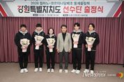 뉴스펀치 이현승 기자 | 강원특별자치도(도지사 김진태)는 1월 19일(월) 오후 2시 30분, 도청 신관 소회의실에서 ‘2026 밀라노·코르티나담페초 동계올림픽’에 출전하는 도 선수단의 선전을 기원하는 출정식을 개최했다. 이번 밀라노 코르티나담페초 동계올림픽은 오는 2월 6일부터 22일까지 개최되며 대한민국은 6개 종목 약 70여 명의 선수단이 출전할 계획이다. 이 가운데 도 소속 선수단은 약 20여 명으로 예상되며 이는 대한민국 대표 선수단의 4분의 1에 해당하는 규모다. 이날 출정식에는 김진태 도지사, 양희구 도 체육회장, 권복희 도 빙생연맹회장, 전건탁 도 봅슬레이연맹회장, 황대헌 쇼트트랙 선수 등을 비롯해 스피드 스케이팅, 스켈레톤, 봅슬레이 선수단과 지도자가 참석했다. 선수 대표로 나선 황대헌 선수는 “오늘 이 자리는 각오를 다지는 출발선”이라며, “도청 선수단은 개인이 아닌 팀으로 기록이 아닌 책임으로 이 자리에 섰고 훈련장에서 쌓아온 시간과 노력을 경기장에서 결과로 보여드리겠다”고 각오를 밝혔다. 김진태 도지사는 “이렇게 도 차원에서 출정식을 여는 것은 전국에서도 처음일 것