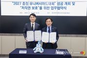 뉴스펀치 박세훈 기자 | 2027 충청 유니버시아드대회 조직위원회는 10일 서울 상암동 한국저작권보호원에서 대회 콘텐츠 저작권 보호를 위한 업무협약을 체결했다고 밝혔다. 이번 협약은 2027 충청 유니버시아드대회의 핵심 자산인 엠블럼, 마스코트 등 공식 상징물의 무단 도용을 차단하고, 국제 대회 수준의 브랜드 가치를 확고히 지키기 위해 마련됐다. 협약식에는 이창섭 조직위 부위원장과 보호원 박정렬 원장 등 양측 주요 인사 14명이 참석했다. 양 기관은 ▲대회 성공 개최 및 저작권 보호 인식 제고를 위한 공동 홍보 ▲상징물 보호 컨설팅 및 교육 지원 ▲온오프라인 저작권 침해 대응 지원 ▲기타 상호 협력이 필요한 사항 등을 공동으로 추진할 계획이다. 특히, 조직위와 보호원은 긴밀한 협력을 통해 대회 운영 중 발생 가능한 저작권 분쟁을 사전 차단하고, 글로벌 기준의 관리 체계를 구축해 대회 전반의 저작권 보호 수준을 한 단계 끌어올린다는 방침이다. 이창섭 조직위 부위원장은 “전 세계가 주목하는 국제대회인 만큼 저작권 보호를 글로벌 기준에 맞춰 철저히 관리하겠다”며 “이번 협약을 통해 대회