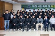뉴스펀치 이현승 기자 | 제천시민축구단 선수단과 구단주의 공식 대면식이 지난 11일 제천시청에서 열렸다. 오는 24일 창단식을 앞두고 열린 이번 대면식에는, 구단주인 김창규 제천시장과 김용기 단장, 선수단 등 관계자들이 참석했다. 선수와 코치진 구성을 마친 제천시민축구단은 구단주와 공식적으로 첫인사를 나누고, 팀의 운영 방향과 시즌 목표를 공유했다. 대면식은 선수단과 코치진 소개, 이번 시즌 운영 계획과 목표 발표, 질의응답 순으로 진행됐다. 김창규 제천시장은 인사말을 통해 선수단을 격려하며, “제천시를 대표하는 시민구단으로서 책임감을 가지고 모든 경기에 최선을 다해달라”고 당부했다. 김용기 단장은 구단 운영 방침과 비전을 소개하며, “제천시와의 협력을 바탕으로 투명하고 신뢰받는 구단을 만들어가겠다”라고 의지를 밝혔다. 한상구 감독은 “2026시즌 목표로 K4리그 상위권 진입과 리그컵 및 코리아컵 3라운드 이상 진출, 충청북도 대표 선발전 승리를 통한 전국체전 우승에 도전하겠다”라며 각오를 밝혔다. 공격수 손주원 선수는 개인 목표를 밝히며, “매 경기 공격 포인트를 기록해 팀에 기여하겠