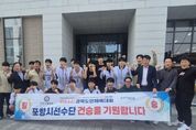 뉴스펀치 박세훈 기자 | 포항시는 ‘제64회 경북도민체육대회’ 사전경기 농구 남자고등부 8강전에서 구미시를 32대 28로 제압하고 4강에 진출했다. 이번 경기는 지난 27일 예천에서 열린 가운데, 포항시는 이번 대회 유력 우승 후보로 꼽히는 구미시를 상대로 경기 초반부터 팽팽한 접전을 펼친 끝에 값진 승리를 거뒀다. 특히 이번 8강전은 포항시 농구 종합우승을 향한 중요한 분수령이 되는 경기로, 선수들은 끝까지 집중력을 유지하며 투혼을 발휘해 의미 있는 결과를 만들어냈다. 이날 경기장에는 포항시 체육산업과와 북구보건소, 송도동, 송도동체육회, 포항시체육회 관계자 등 100여 명이 함께 응원에 나서 선수들에게 큰 힘을 보탰다. 또한 박재관 포항시 자치행정국장이 직접 현장을 찾아 선수단을 격려하며 사기 진작에 힘을 더했다. 서장원 포항시농구협회장은 “선수들이 끝까지 최선을 다해 좋은 결과를 낼 수 있도록 적극 지원하겠다”며 “남은 경기에서도 마지막까지 최선을 다하겠다”고 말했다. 박재관 자치행정국장은 “어려운 경기 속에서도 끝까지 포기하지 않고 값진 승리를 거둔 선수들이 매우