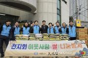 뉴스펀치 박상훈 기자 | 사단법인 천지회가 지난 4일, 수원시 장안구 정자2동을 비롯하여 파장동, 정자2동, 정자3동, 동광원에 설 맞이 쌀 나눔 봉사를 진행했다. 사단법인 천지회는 30여년 동안 수원지역의 어려운 이웃을 위해 사랑의 쌀 나누기, 결손가정 및 청소년지원, 다문화 가정의 지원사업 등 다양한 나눔 활동을 실천하고 있다. 이번 나눔에서는 설을 맞이하여 준비한 쌀 400kg, 라면 40박스를 장안구 내 4개 동과 아동복지시설 동광원에 전달했다. 임동봉 천지회 회장은 “장안구 지역에서 30년이 넘게 이웃들과 함께하며 사랑을 나누고 있다. 이번 설에도 함께 마음을 나누고파 준비한 먹거리가 이웃들에게 조금이나마 도움이 되면 좋겠다”며 “앞으로도 지역사회를 위한 활동을 지속하겠다”고 전했다. 한편, 정자2동 행정복지센터는 이날 전달받은 쌀과 라면을 복지사각지대 위기가구에 전달할 예정이다.