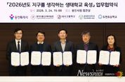 뉴스펀치 박상훈 기자 | 용인특례시는 24일 시청 접견실에서 용인교육지원청을 비롯해 3개 학교와 ‘지구를 생각하는 생태학교 육성사업’을 위한 협약을 맺었다. 이날 협약식에는 조영민 교육장과 올해 생태학교로 선정된 대지고 유동철 교장, 효자초 정계환 교장, 도현초 연승희 교장, 담당 교사들이 참석했다. 이들 기관은 협약에 따라 ▲학교별 맞춤형 생태교육 운영 지원 ▲교과·교육과정과 연계한 생태교육 프로그램 개발·자문 ▲생태학교 육성사업 성과평가 등을 위해 협력하기로 했다. 올해 4년 차를 맞이한 ‘지구를 생각하는 생태학교’ 사업은 전국 지자체 중 최초로 환경교육 전문 인력을 학교 현장에 배치, 이론 교육을 넘어 실천 중심의 생태전환교육을 하는 용인시의 핵심 환경교육 사업이다. 시는 2023년부터 해마다 공모를 통해 지역 내 학교를 선정해 왔다. 올해 선정된 3개 학교를 포함해 총 12개교가 생태학교 사업에 참여하고 있다. 올해 기준 용인 지역은 초·중·고 343학급, 학생 9149명이 생태교육에 참여하면서 현장 중심의 체계적인 환경교육으로 높은 평가를 받고 있다. 시는 축적된