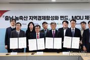 뉴스펀치 김길룡 기자 | 충남도는 19일 도청에서 농업정책보험금융원, 충남테크노파크, 충남경제진흥원과 ‘충남 농축산 지역경제 활성화 펀드’ 업무협약(MOU)을 체결했다. 이번 협약은 도내 농축산식품 기업 발굴·투자를 통해 농축산 분야 벤처 창업의 혁신 성장 체계를 구축하고자 마련했다. 전형식 정무부지사와 서해동 농업정책보험금융원장, 서규석 충남테크노파크 원장, 한권희 충남경제진흥원장, 운용사인 류준걸 와프인베트먼트 대표이사, 임성원 노틸러스인베스트먼트 대표이사 등 관계자 20여 명이 참석한 가운데, 이번 행사는 경과 보고, 협약 설명 및 서명 등의 순으로 진행했다. 이번 협약으로 각 기관은 도내 농축산식품 분야 창업 생태계 활성화와 스타트업 성장 지원을 강화하기 위한 ‘충남 농축산 지역경제 활성화 펀드’ 제1호를 결성·운영하는 데 협력한다. 구체적인 협력 내용은 △농림수산식품기업 발굴·육성을 위한 정보 공유 △투자 및 자금 연계 관련 업무 △멘토링 및 교육 등 벤처 창업, 투자 활성화를 위한 행사 공동 개최 △지역경제 활성화 필요 업무 등이다. 충남 농축산 지역경제 활성화 펀드는 총 1