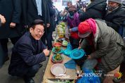 뉴스펀치 김용희 기자 | 이재명 대통령은 1월 23일 울산에서 열린 '울산의 마음을 듣다' 타운홀미팅에 앞서 울주군에 위치한 남창옹기종기시장을 깜짝 방문했다. 울산 울주군 온양읍에 위치한 남창옹기종기시장은 조선시대 곡물창고가 있던 남창리 지역에서 열리는 5일장(3일.8일) 형태의 전통시장으로, 이 대통령은 장날 시장을 찾은 것이다. 이 대통령의 갑작스러운 방문에 시장 상인들과 시민들은 "대통령님 화이팅", "중국은 잘 다녀오셨냐" 등 환영 인사를 전했다. '대통령님 환영합니다^^'라고 적힌 A4 크기의 종이를 흔드는 시민들도 있었다. 이 대통령은 시민들과 악수를 하거나 휴대전화로 셀카를 찍는 등 화답했고, 멀리 있는 시민들을 향해서는 "새해 복 많이 받으세요"라며 큰 소리로 인사를 건네기도 했다. 이 대통령은 시장을 둘러보며 상인들에게 “장사는 잘 되시냐”며 곳곳을 세심히 살폈고, 상인들은 ”남창시장을 찾은 첫 대통령“이라며 이 대통령 방문에 감사의 뜻을 전했다. 이 대통령은 가락엿, 도너츠, 알밤, 대파와 같은 먹거리를 온누리 상품권으로 구매했다. 배와 튀김을 산 후에는 현장에서 일행