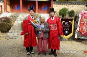 뉴스펀치 김길룡 기자 | 고창군 고창향교(전교 한상용) 17일 경로 효친 사상을 북돋아 높이기 위해 기로연(耆老宴)을 개최했다. 이날 고창향교 기로연에는 심덕섭 고창군수와 유림회원 등 100여 명이 참석한 가운데 행사를 통해 선현(先賢)의 훌륭한 ‘효’ 정신을 기렸다. 기로연은 조선시대에 70세 이상 원로 문신에게 매년 봄 상사(上巳 : 음력 3월 3일)과 가을 중양(重陽 : 음력 9월 9일)에 베풀었던 잔치다. 오늘날에는 향촌 유생들의 교화(敎化)와 상규(相規)의 향음주례(鄕飮酒禮) 정신을 담고 있어 지방 유림이 유교 문화와 경로효친 사상을 계승 발전시키는데, 크게 기여하고 있다. 특히 이날 장수상을 수상한 94세 조아지 어르신(고창읍)은 훌륭한 지역사회의 일원으로 이웃을 사랑하는 마음이 남다르고 아름답게 장수했기에 그 의미를 더했다. 고창향교 한상용 전교는 “효를 근간으로 하는 우리의 아름다운 전통 윤리와 미풍양속이 점차 사라져 가는 현대사회에서 이러한 전통 유교문화가 더욱 계승 발전할 수 있도록 노력하겠다”라고 말했다. 심덕섭 고창군수는 “오늘 기로연 행사는 경로효친