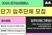 뉴스펀치 김길룡 기자 | 경기문화재단 경기상상캠퍼스는 문화예술 기반 실험적이고 창의적인 2026 단기 입주단체를 오는 12월16일까지 모집한다. 2026 단기 입주 모집은 다양한 분야의 문화기획자, 예술가, 청년 활동가, 창업·창직 단체 등이 약 5개월간 경기상상캠퍼스에 입주해 새로운 실험과 협업을 펼칠 수 있는 경험 제공을 위해 마련된 프로그램이다. 경기상상캠퍼스는 이번 모집을 통해 공실을 최소화하는 동시에, 공간 특성에 적합한 역량 있는 단체들을 선제적으로 발굴하여 문화 기반 창업·창직 및 청년 활동의 실험실 역할을 강화할 계획이다. 또한 단기 입주 경험을 제공함으로써 정기 입주로 이어질 수 있는 사전 역량 검증과 활동 기반 마련의 기회를 확장하고, 입주단체 간 교류·협업으로 캠퍼스 전반의 활성화를 도모 할 계획이다. 모집 공간은 생활1980, 청년1981, 디자인1978, 공작1967 등 4개 동이며, 총 15개 단체를 선발한다. 각 공간의 기능에 맞춰 공방, 문화기획·교육, 다장르·융복합, 디자인, 제작 기반 창작 활동 등 다양한 분야의 역량 있는 단체를 모집한다. 입주 기간은 2026년 3월 1일부터 7월 26일까