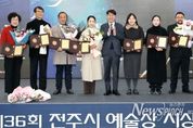 뉴스펀치 김길룡 기자 | 전주시가 각자 자신이 활동하는 분야에서 빛을 발하며 전주를 대한민국 대표 문화도시로 만드는 데 앞장선 예술인들을 선정해 시상했다. 시는 24일 문화공판장 작당에서 지역 문화예술 발전에 기여한 예술인의 공로를 기리기 위한 ‘제36회 전주시 예술상 시상식’을 개최했다. 전주시 예술상은 전주시를 대표하는 문화예술상으로, 시는 각 분야에서 뛰어난 예술적 성과와 지역 문화예술 진흥에 기여한 예술인을 해마다 선정해 시상하고 있다. 올해 전주시 예술상 수상자는 지난달 26일 열린 예술상 선정 심사위원회의 엄정한 심사를 거쳐 문학 부문의 이연희 씨 등 8개 부문 8명의 수상자가 결정됐다. 영광의 제36회 예술상 수상자는 △문학 부문=이연희 석정문학회 부회장(67세, 여) △음악 부문=소중연 바흐챔버플레이어스 대표(59세, 남) △국악 부문=김형태 (사)전북민족예술인총연합 전주지부 상임연출(49세, 남) △무용 부문=박현희 박현희무브먼트 예술 총감독(51세, 여) △미술 부문=이철규 예원대학교 객원교수(65세, 남) △사진 부문=박성민 사진전문갤러리 봄 대표(53세, 남) △연극 부문=최성