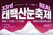 뉴스펀치 조평훈 기자 | (재)태백시문화재단은 제33회 태백산 눈축제의 공식 포스터를 공개하고 본격적인 홍보에 나섰다고 밝혔다. 제33회 태백산 눈축제는 오는 2026년 1월 31일부터 2월 8일까지 태백산국립공원 일원에서 열릴 예정으로, 이번 축제는 ‘2026 RE⧗AL 태백산 눈축제’를 슬로건으로 시민과 관광객이 함께 참여하는 체류형 겨울축제로 운영된다. 공개된 공식 포스터는 ‘33rd REAL 태백산 눈축제’를 메인 타이틀로, 이번 축제의 주제인 ‘REAL’을 직관적으로 배치해 축제의 방향성과 정체성을 명확히 전달한다. ‘REAL’은 △항상 기억에 남는 축제(REMEMBER ALWAYS) △시민과 함께 소통하는 축제(REPLY ALWAYS) △휴식이 공존하는 축제(RELAX ALWAYS)를 의미한다. 포스터는 와인 컬러 톤을 바탕으로 한 겨울 산세와 조명 연출을 통해 눈축제 특유의 따뜻하고 안정적인 분위기를 표현했으며, 천제단과 태백시 마스코트 ‘태붐이’, 겨울 체험 장면 등을 배치해 태백만의 지역성과 가족 친화적 이미지를 함께 담아냈다. 문화재단은 축제의 인지도와 친근감을 높이기 위해 올해