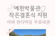 뉴스펀치 박세훈 기자 | 예천박물관은 오는 3월부터 야외 잔디마당을 ‘작은결혼식’ 장소로 무료 대관한다고 밝혔다. 이번 사업은 과도한 결혼 비용과 형식 중심의 예식 문화에서 벗어나, 실속 있고 가치 중심의 결혼식을 장려하기 위해 마련됐다. 특히 자연 친화적이고 개방감 있는 예천박물관 야외 잔디마당의 공간적 특성을 살려 가족·친지 중심의 따뜻한 예식을 지원할 계획이다. 대관 대상은 신청일 현재 부부 중 1인 이상이 예천군에 주소를 두고 있는 예비 부부로, 신청을 희망하는 경우 예천박물관 홈페이지에서 신청서를 내려받아 작성 후 제출하면 된다. 예식은 양가 하객 100명 이하의 소규모로만 가능하며, 음식 제공은 음료에 한해 허용되고 피로연은 금지된다. 김상식 문화관광과장은 “박물관의 아름다운 잔디마당이 예비부부들에게는 실속 있고 특별한 추억의 장소가 되길 기대한다”며 “이용객들이 불편함 없이 생애 가장 빛나는 순간을 맞이할 수 있도록 운영과 지원에 최선을 다하겠다”고 말했다.